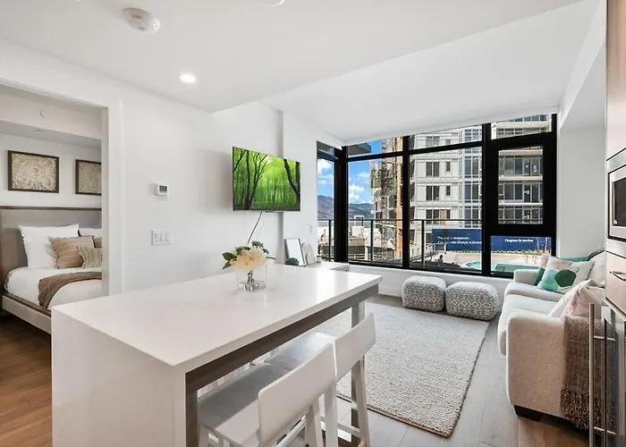 The 46 m² Aqua Corner Unit W Balcony And Amazing View #614 Apartment Kelowna is located within a 10-minute drive of Don-O-Ray Farm Adventure and 6 km from Okanagan Heritage Museum. Wi-Fi and a car park are also available at this 1-bedroom apartment.